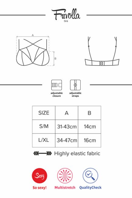Το σουτιέν Obsessive Frivolla αποπνέει αισθησιασμό με τον ιδιαίτερο σχεδιασμό των λουριών και τη φίνα δαντέλα. Είναι χωρίς μπανέλες και χωρίς ενίσχυση, αγκαλιάζει φυσικά το στήθος και χαρίζει άνεση και κομψότητα, διατηρώντας παράλληλα το σέξι χαρακτήρα του.