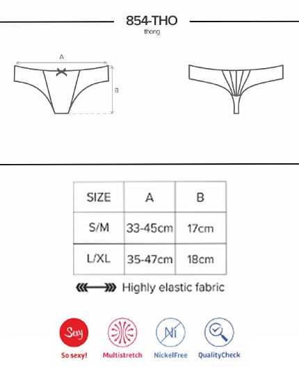Το στρινγκ Obsessive 854 σε μαύρο χρώμα συνδυάζει διαφάνεια και δαντέλα για μια άκρως αισθησιακή εμφάνιση. Η σατέν λεπτομέρεια στο μπροστινό μέρος χαρίζει διακριτική κομψότητα, ενώ η ελαστική του εφαρμογή προσφέρει άνεση και τέλεια εφαρμογή. Ένα εσώρουχο που αναδεικνύει τη θηλυκότητα και προσφέρει σαγηνευτική αυτοπεποίθηση.